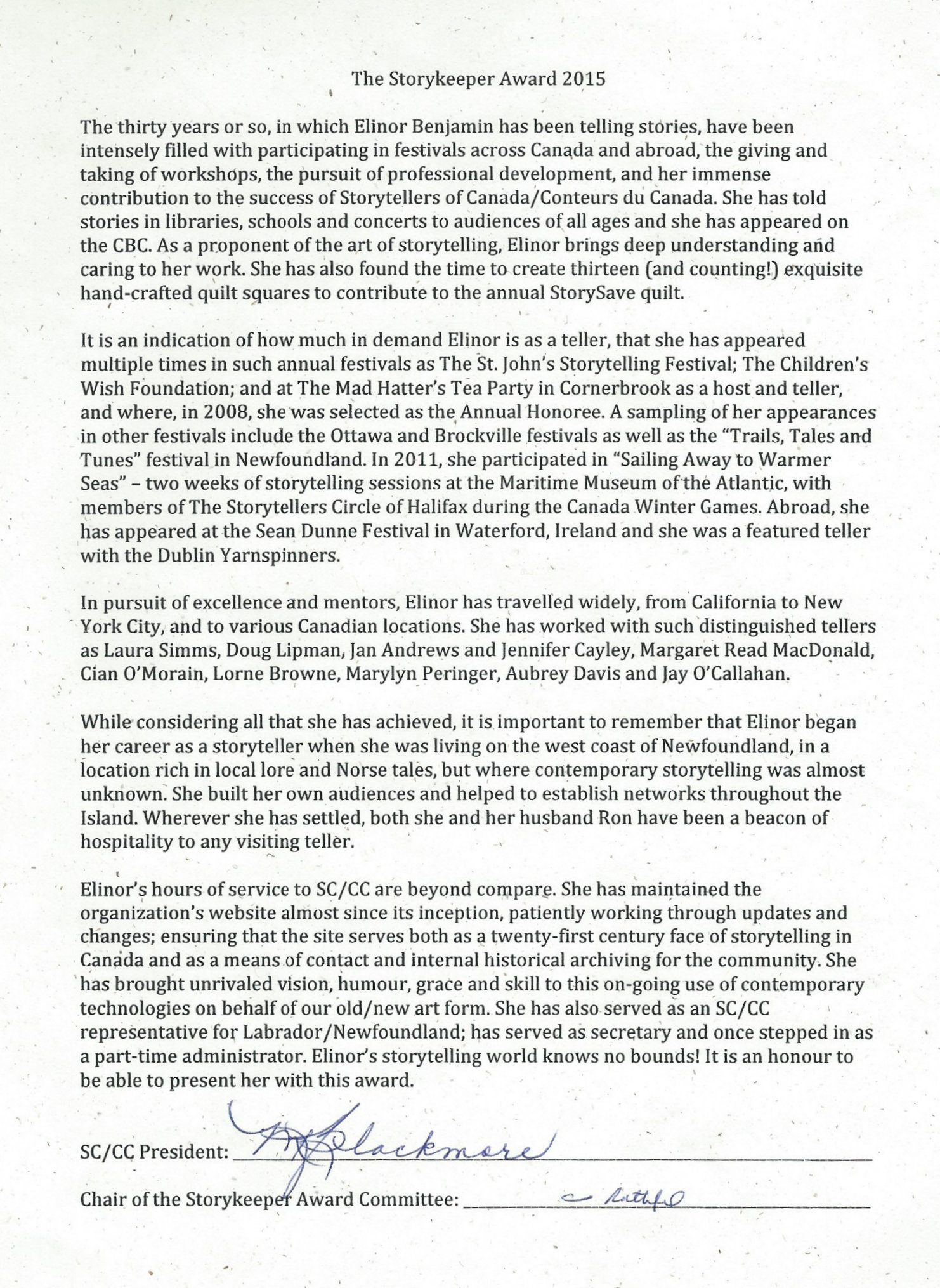 - passion for storytelling began nearly 40 years ago, as the result of friendship with Newfoundland fiddler and storyteller, Emile Benoit, and hearing Rita Cox, Bob Barton and Laura Simms at library conferences. I participate in a number of fund-raising and charitiable events in the Halifax area.